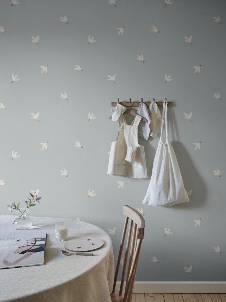 Let tranquility float into your space with the Frida light blue wallpaper, where graceful doves carry peaceful vibes across your walls. Soft pastels melt into one another, creating a calming sanctuary filled with delicate movement and serenity. Bring a gentle yet striking touch to any room with this elegant pattern that whispers a soothing story in every glance.